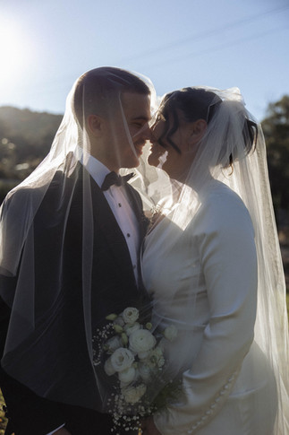 Perched high in the Sunshine Coast hinterland, Ellie and Max were married at a private residence surrounded by rolling green acreage and sunlit mountain air. The day was warm and clear, the kind of spring afternoon that feels timeless, where everything slows to make space for love and quiet faith.
